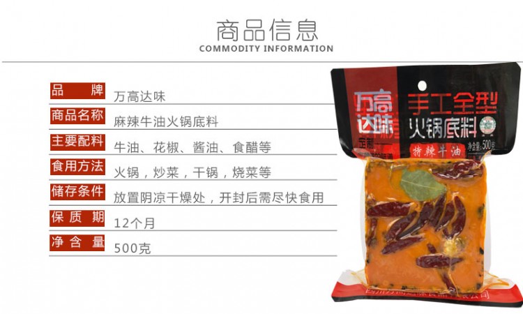 詳細信息 ![]() ![]() ![]() ![]() ![]() 主要經營:公司擁有調味品、方便食品、肉制品、蔬菜制品的生產資質。主要產品覆蓋火鍋底料、辣椒紅油、干鍋香鍋底料、面食調料、粉類調料等標準化小調料包,以及酸辣粉、綿陽米粉、新疆炒米粉、自熱火鍋等方便食品的研發與定制。 |